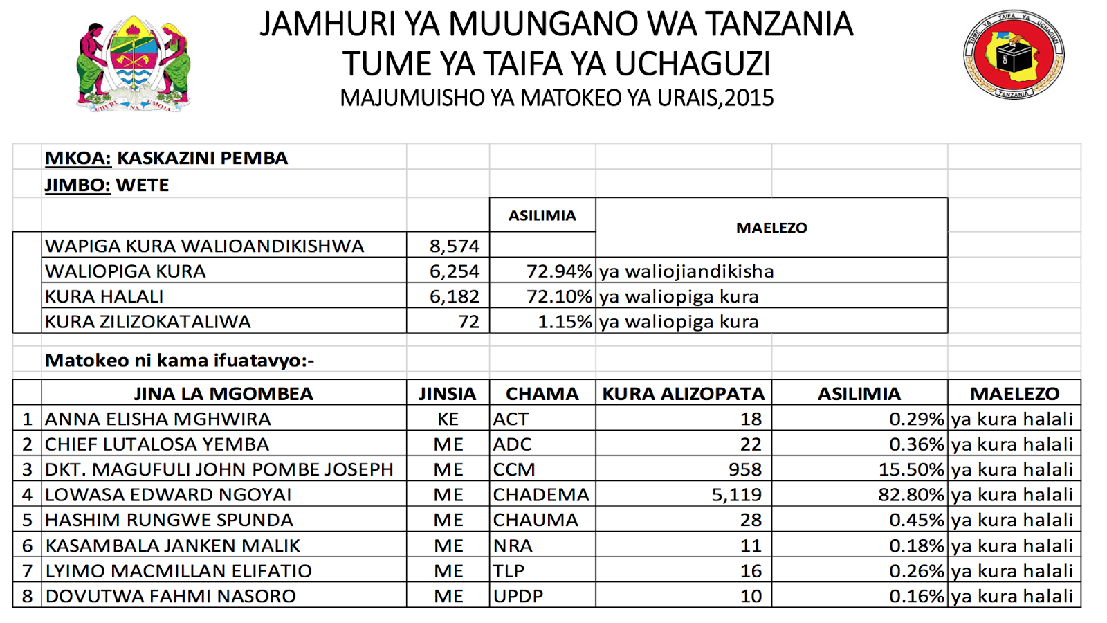 TUME YA TAIFA YA UCHAGUZI YATANGAZA MATOKEO YA URA...