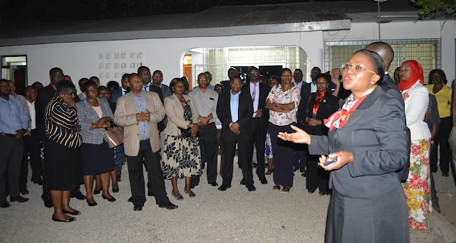 Katibu Mkuu Ofisi ya Waziri Mkuu (Bunge na Waziri Mkuu) Bi. Maimuna Tarishi akizungumza na baadhi ya watumishi wa Ofisi ikiwa ni sehemu ya kupongezana kwa shughuli za utekelezaji wa masuala ya bajeti ya Ofisi.