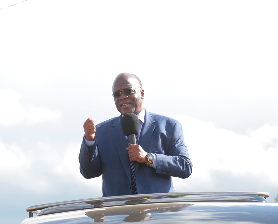 Rais wa Jamhuri ya Muungano wa Tanzania Dkt. John Pombe Magufuli akizungumza na wananchi wa Ipogolo mkoni Iringa wakati akitokea Kilolo.
